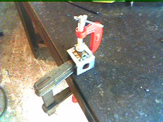 Here is the binder and sleeve ready to weld. I simply clamped them together with a small G clamp.