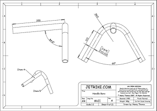 The first thing I had to change from the plans was the handle bar width. The tiller length isn't long enough in this design to get enough leverage, so I had to make the handle bars wider to compensate.
