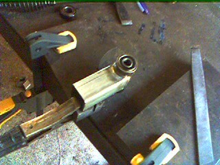 Now push a set of sacrificial R8 bearings into the housings to protect them from warping and weld them together.