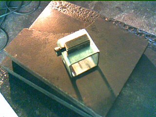 This is the second BB Mount I have made, and the last one warped so much that my Campagnolo sealed cartridge wouldn't fit into it, fortunately another Shimano one did. So this time I decided to try something different to see if I could minimize the warping from the heat effected zone and weld bead. As you can see I have cut another piece of 40 x 2.5mm SHS about 40mm long and cut it to make a squat Square U shape. The shell is resting inside it. I will run one weld bead down each side laterally and see how this goes.