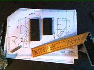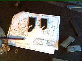 The blanks must be perfectly square on the edge that is going to be welded to the drive train forks. Sharpening my chalk on the bench grinder, I marked the most important guide lines on the larger of the two blanks. Then I clamped them together at the square edge using my vice grip adjustable spanner.