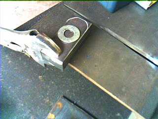 I started by using a washer to mark out the area of metal I want to cut out. Notice that I have already ground the base of these mounts square, so the lengths will be identical.