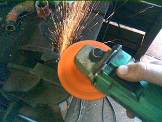 Next using the cut-off wheel on the angle grinder, I cut around the outside of the fillet outline as close as possible. Here I am cutting the fillet for Items 35 as a pair (as you may have noticed, I am not wearing gloves here because they make it too difficult to operate the camera, the sparks are just for show!).