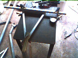 I started building the frame by clamping Items 11 and 12 to the work bench and tacking and welding them together. After this I welded on Item 13, all pretty straight forward.
