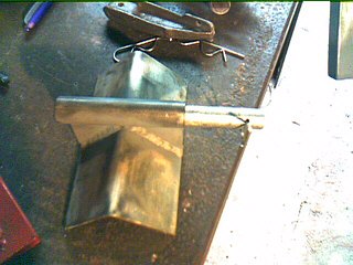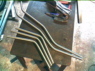 There are several things you really must get right with the seat frame. Firstly you must mirror the bends as closely as possible. To do this I ended up welding two 4" nails to the pivot plates on the pipe bender (shown below). I found that if I measured the distance between the tips of these nails once I got the angle right, I could repeat the bends. The final thing that is critical is making sure that the seat is mounded square, centered and level to your frame.